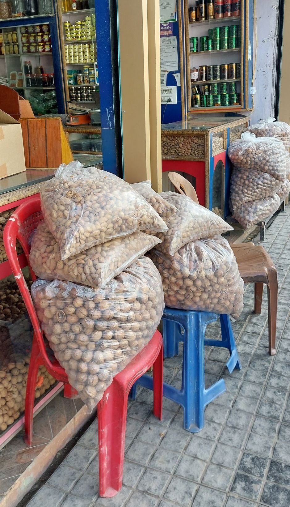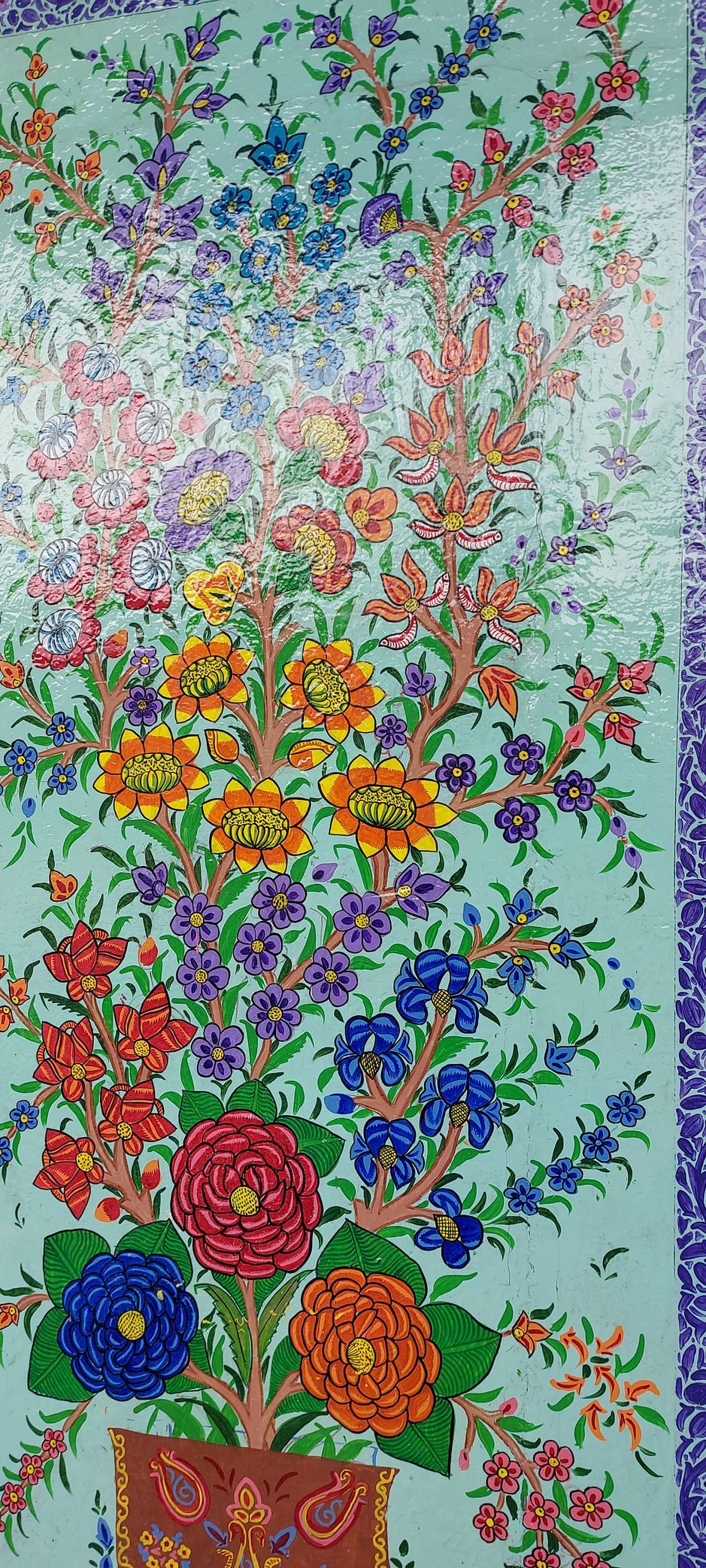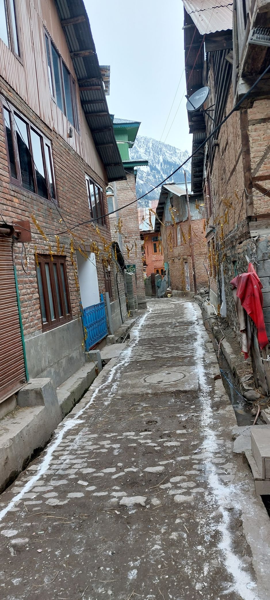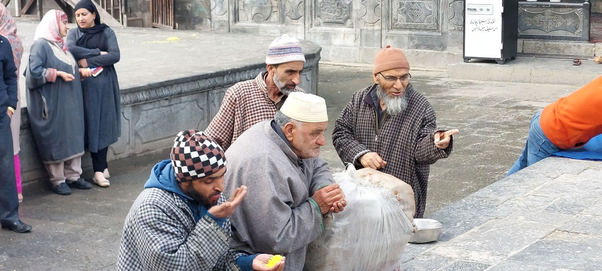 Butshikan brachte aus dem Iran großartige Holzschnitzer, Kupferschnitzer, Maler und Steinmetze mit nach Kashmir. Die Kashmiris lernten und hatten somit ein Einkommen. Die Moschee ist ein wundervolles Bauwerk ganz aus Holz, mit Pappmache, Lackmalereien und Holzschnitzereien verziert. Heute ist Freitag. Ein wichtiger Tag für alle Muslime. Viele haben frei, die Straßen und Märkte sind voll. Die Männer gehen zum Beten in die Moscheen. Vereinzelnd auch die Frauen. Mit verdeckten Haaren darf ich in den Hof und auch um die Moschee herum gehen. Rein darf ich als Europäerin nicht. Hinein schauen ja.