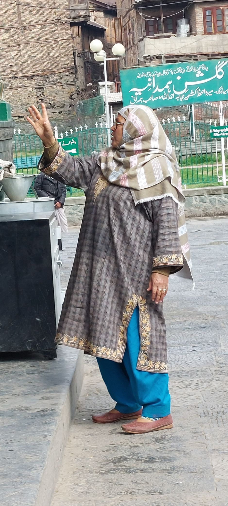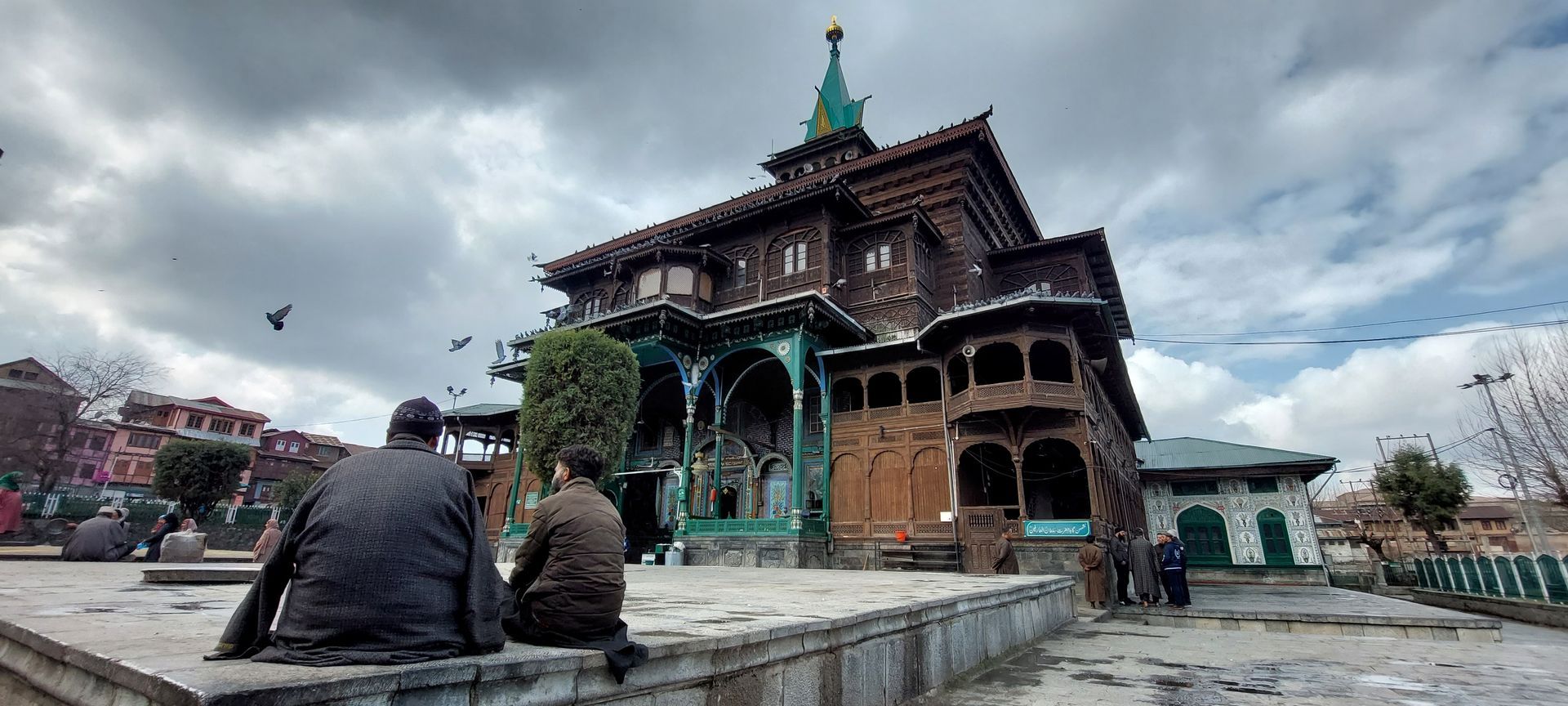 In der Shah Hamdan Moschee oder Khanqah-e-Molla erfahre ich, dass der Name aus dem Iran stammt. Sie ist eine der ältesten Moscheen Srinagars und wurde wohl im Jahr 1359 zum Gedenken an den Prediger Mir Syed Ali Hamdani vom ersten muslimische Herrscher Sikander Butshikan erbaut. Und, dass hier an diesem Ort schon Menschen aller Religionen gebeten haben. Buddhisten, Muslime, Sufis, Hindus. Auf der Rückseite der Moschee zum Fluss Jhelum hin steht auch jetzt noch ein hinduistischer Tempel.