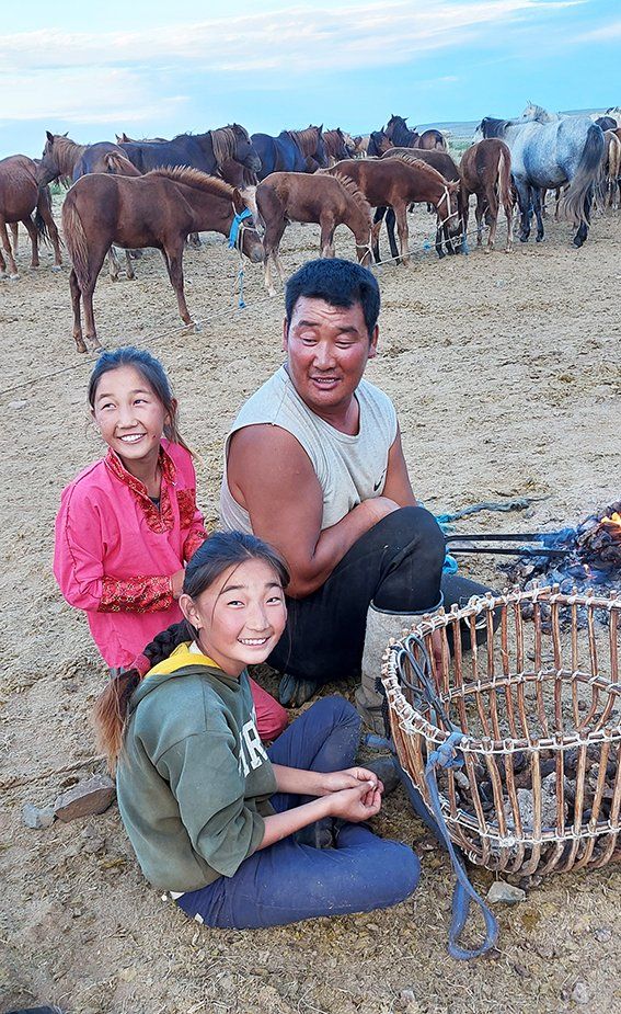 Halt machen wir bei den zukünftigen Schwiegereltern Totos Bruder. Auch hier werde ich mit aller mongolischer Neugierde und Freundlichkeit empfangen. Darf Kamelmilch und Wodka aus Kamelmilch, auf dem noch die Fettaugen schwimmen, probieren.