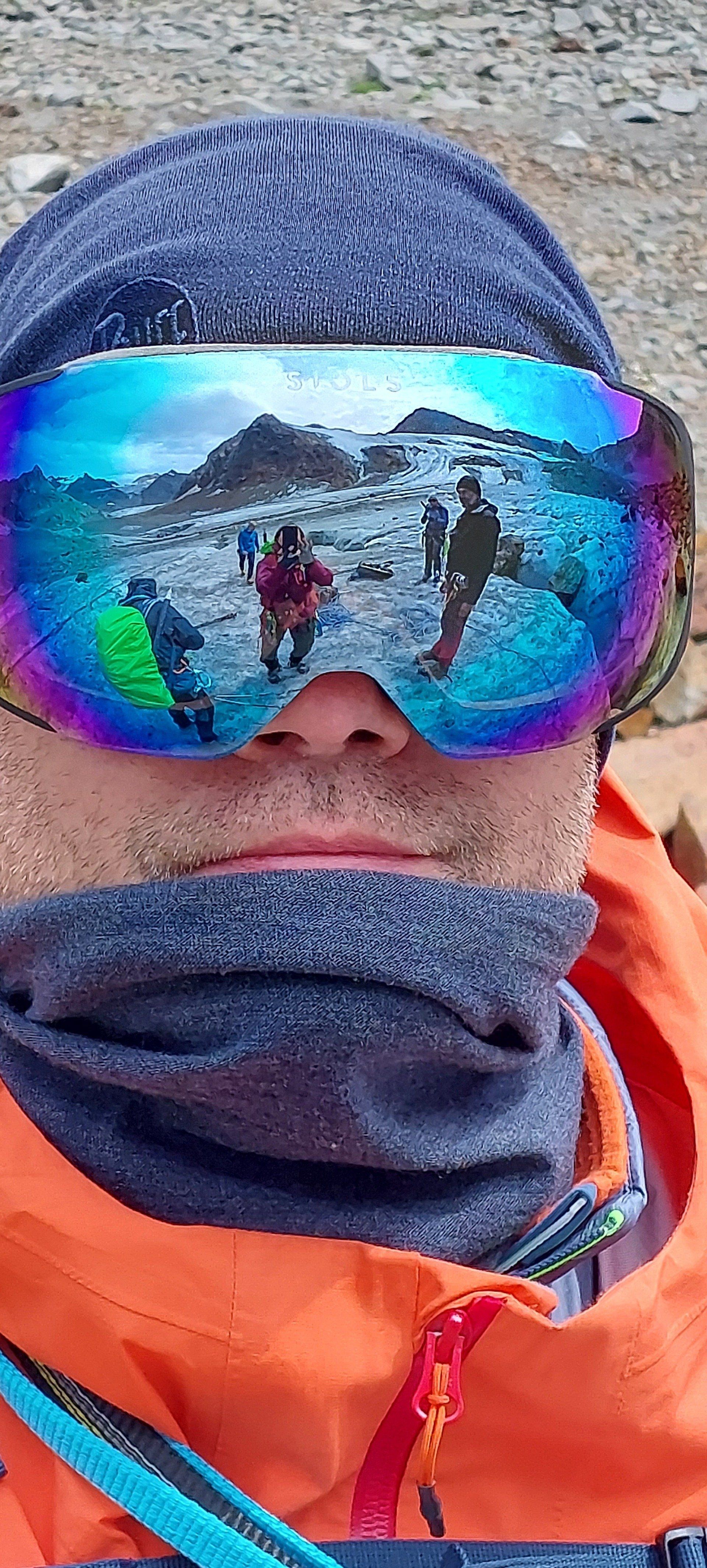 Montag, der letzte volle Tag hier oben. Drei verschiedene Touren standen zur Auswahl. Wir entschieden uns für den mittellangen. Viermal die Überschreitung von 3000 m! Wenn das keine Motivation ist! Also los. Proviant und genügend Wasser im Rucksack, ein Smiley im Gesicht. Hoch - runter, hoch – runter, hoch – runter: Karlesschneid, Pitztaler Jöchl, Pitztaler Jochkopf mit richtigem Gipfelkreuz und kurzer Klettereinlage. Weiter den Franz-Auersteig, nördliches Piollesjoch, Poillesfernerkopf, nördlicher Polleskogel mit einem Stück eines schwarzen Weges. Aufregend sich an den oft steil nach unten gezogenen Ketten hinab Richtung „Busstation“ am Rettenbachferner zu bewegen. Zuerst weglos in Richtung Seilbahn und dann unter dieser ein steiles Schneefeld hinauf hoch zum Rettenbachjoch. Zweite Pause. Diese hatten wir uns auch verdient! Letzte Etappe runter zur Braunschweiger Hütte. Geschafft. Juchhu! Abends heftiges Gewitter und Starkregen. Die Temperaturen kühlten sich ab. So wurde unser Abstieg am Dienstag mit leichtem Niesel zu einer sehr konzentrierten Aktion.